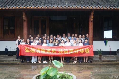 为充分验展家庭在党风廉政建设和反糜烂斗争中的主要作用,营造风清气正的优异情形,团结集团警示教育月运动安排,6月20日下昼,微彩网情形集团纪委、妇联组织开展“弘扬清廉家风,共筑优美情形”家庭助廉运动。集团党委委员、纪委书记周田元,各党组织书记、组纪委员以及集团中层干部眷属共40余人加入运动。