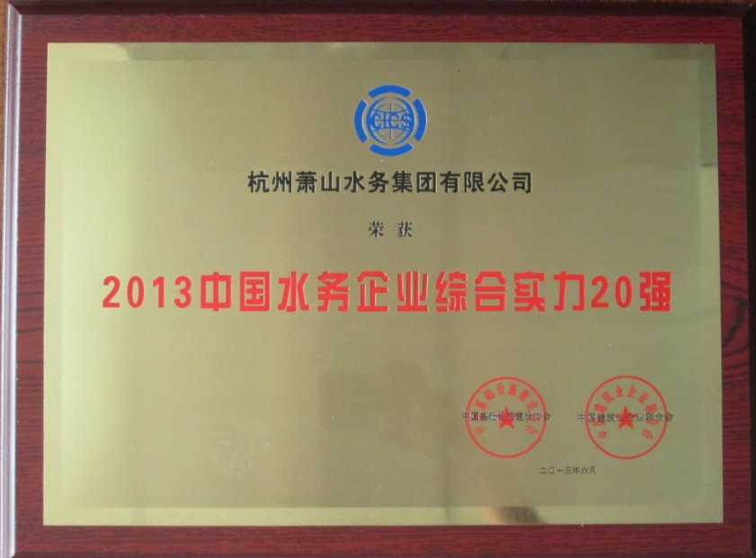 克日 ,在深圳举行的“2013(第3届)天下基础设施建设岑岭论坛暨评选表扬”会上 ,集团载获“2013中国水务企业综合实力20强”声誉称呼 ,成为浙江省唯逐一家获此声誉称呼的水务企业 ,集团董事长、总司理韩国华荣获2013中国水务行业20位功勋企业家称呼。