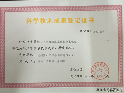 据悉,三江公司于2015年肩负了浙江省省级工业新产品开发项目——基于絮凝理论的印染废水COD去除剂和市政给水高效聚合氯化铝的研发,经由一年多的全心组织实验,两个项目已于2015年底通过专家组判断验收。同时,产品经小试应用,回声较好。