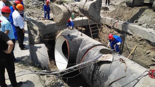 二、施工投入力度大。对DN2400管阀门举行了立异刷新,使原本3个半小时的关阀时间缩短至1个半小时。8台排水泵,50余人30小时不中止作业,与时间赛跑。