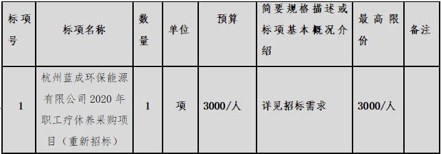 3¡¢ÏîÄ¿Ãû³Æ£ºº¼ÖÝÀ¶³É»·±£ÄÜÔ´ÓÐÏÞ¹«Ë¾2020ÄêÖ°¹¤ÁÆÐÝÑø²É¹ºÏîÄ¿£¨ÖØÐÂÕб꣩
