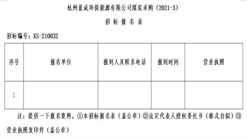 ¶þ¡¢ÕбêÏîÄ¿£ºº¼ÖÝÀ¶³É»·±£ÄÜÔ´ÓÐÏÞ¹«Ë¾ÃºÌ¿²É¹º(2021-3)¡£