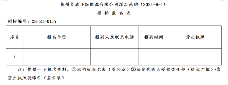 ¶þ¡¢ÕбêÏîÄ¿£ºº¼ÖÝÀ¶³É»·±£ÄÜÔ´ÓÐÏÞ¹«Ë¾ÃºÌ¿²É¹º(2021-6-1)¡£