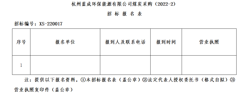 ¶þ¡¢ÕбêÏîÄ¿£ºº¼ÖÝÀ¶³É»·±£ÄÜÔ´ÓÐÏÞ¹«Ë¾ÃºÌ¿²É¹º(2022-2)¡£