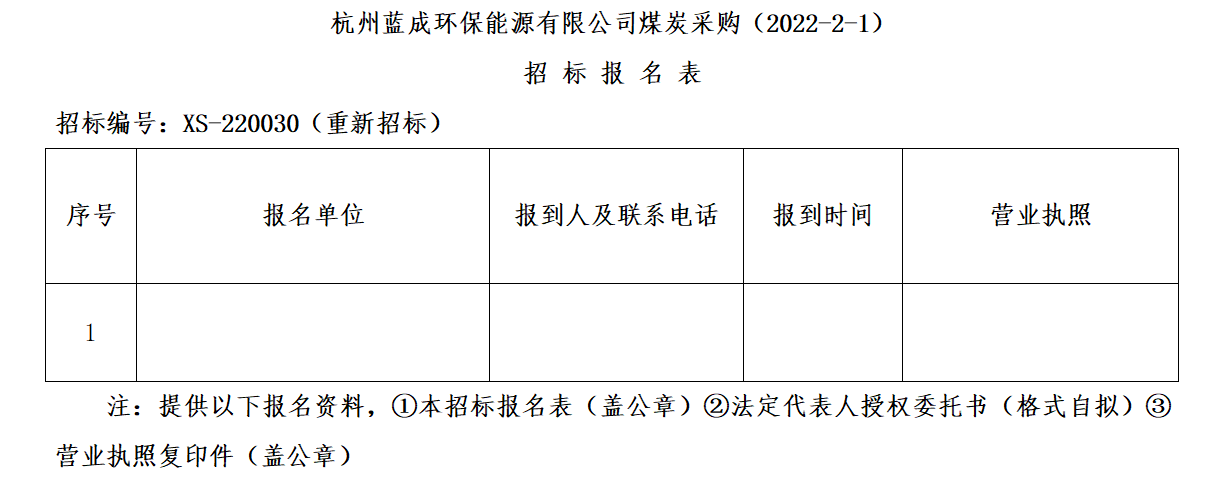 ¶þ¡¢ÕбêÏîÄ¿£ºº¼ÖÝÀ¶³É»·±£ÄÜÔ´ÓÐÏÞ¹«Ë¾ÃºÌ¿²É¹º(2022-2-1)¡£