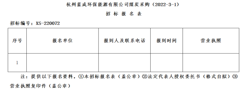 ¶þ¡¢ÕбêÏîÄ¿£ºº¼ÖÝÀ¶³É»·±£ÄÜÔ´ÓÐÏÞ¹«Ë¾ÃºÌ¿²É¹º(2022-3-1) ¡£