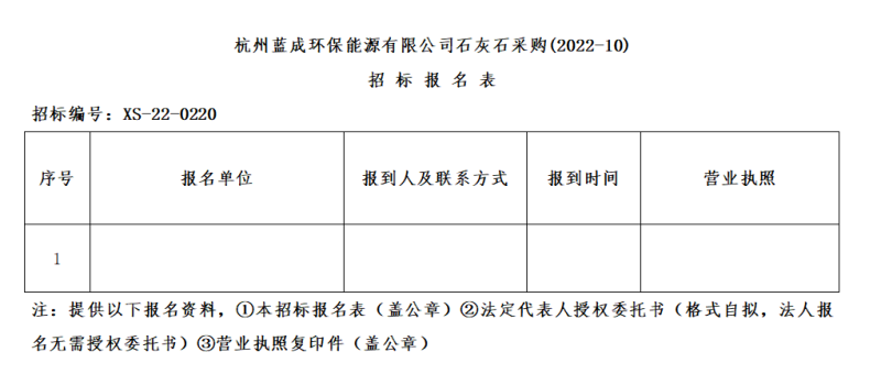¶þ¡¢ÕбêÏîÄ¿£ºº¼ÖÝÀ¶³É»·±£ÄÜÔ´ÓÐÏÞ¹«Ë¾Ê¯»Òʯ²É¹º(2022-10)¡£