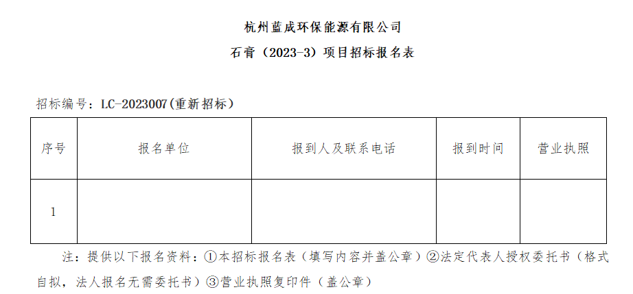 Ò»¡¢ÕÐ ±ê ÈË£ºº¼ÖÝÀ¶³É»·±£ÄÜÔ´ÓÐÏÞ¹«Ë¾£¬Õбê±àºÅ£ºLC-2023007£¨ÖØÐÂÕб꣩¡£