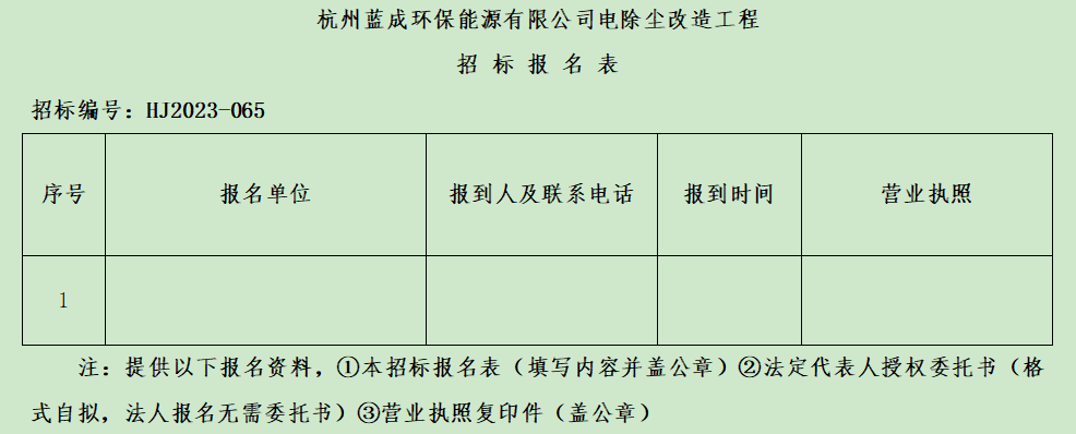 一、招 标 人:杭州蓝成环保能源有限公司,招标编号:HJ2023-065