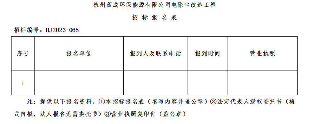 凭证杭州微彩网情形集团招标治理要求,杭州蓝成环保能源有限公司对“电除尘刷新工程”举行果真招标。