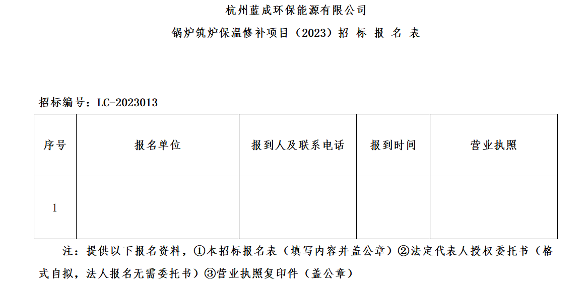 ¶þ¡¢ÕбêÏîÄ¿£ºº¼ÖÝÀ¶³É»·±£ÄÜÔ´ÓÐÏÞ¹«Ë¾¹øÂ¯Öþ¯±£ÎÂÐÞ²¹ÏîÄ¿£¨2023£©