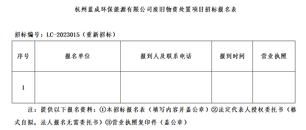 Ò»¡¢ÕÐ ±ê ÈË£ºº¼ÖÝÀ¶³É»·±£ÄÜÔ´ÓÐÏÞ¹«Ë¾£¬Õбê±àºÅ£ºLC-2023015£¨ÖØÐÂÕб꣩¡£