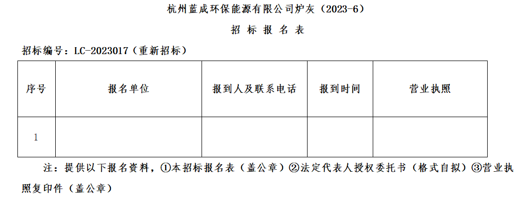 凭证杭州微彩网情形投资建设集团有限公司物资招标治理要求,杭州蓝成环保能源有限公司对“杭州蓝成环保能源有限公司炉灰(2023-6)”举行果真招标。