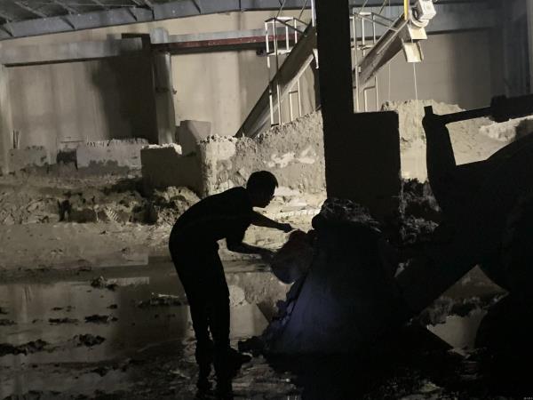 两名当班职员依附这几年积累下来的知识和履历,接纳了如下步伐:先用铲子将大泥块捣碎,再将捣碎后的泥块从机械内部铲出至水桶中,其余无法捣碎的,徒手取出,最后再把泥块运至污泥堆放处。就这样一趟又一趟地循环操作,他们共计运出了七桶沉甸甸的泥块。此时,经由几个小时的奋战,阀门也已经修复完毕,污泥浓缩池又恢复了正常事情。
