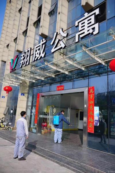 第三水厂党员在确保清静生产大条件下,使用自身资源优势,为厂区周边公交车站、垃圾桶周围区域自愿消毒。