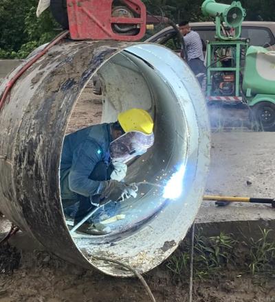 而绵延的雨水和基坑积水情形,也给割接历程中的电焊事情增添了操作难度。为了清静高效完成电焊使命,现场治理职员实时协调,只管在雨势较小时举行电焊操作,同时安排专人撑伞遮雨;基坑使用水泵一连性抽水,阻遏水电的接触,包管割接事情清静平稳地推进。