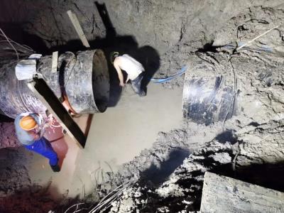 施工现场同心作业,割接事情提速推进。风里雨里,他们的身影奋战在一线,只为尽早恢复黎民的正常用水,这就是“乘风破浪”的供水人!