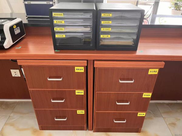 为打造高质量办公服务情形,衙前营业所大厅引用OSM现场治理系统,严酷凭证公司要求,用科学的要领对服务大厅做出有用治理,各办公用品分门别类,事情职员办公桌上电脑、打印机、电话等常用工具也都凭证统一标准定位摆放,办公用品贴好醒目的标签,标签清晰明晰,种种电源线统一走向,使办公情形清洁整齐,做到每一件物品有地拿,有地放,在办公区域看不见任何私人物品,文档资料按类整齐摆放,凭证现场治理系统要求,指导事情职员养成包管事情场合整齐、清洁、有条理的办公习惯,提高了事情职员的服务效率。