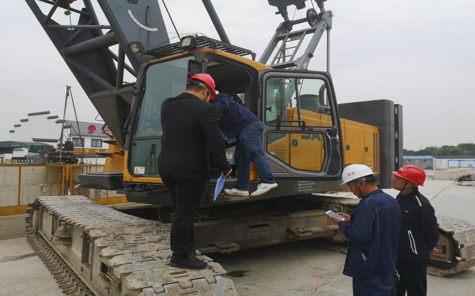 11月12日,杭州市质监总站莅临杭州市第二水源输水通道工程江南线过江段(一阶段)举行施工现场起重机械专项检查。