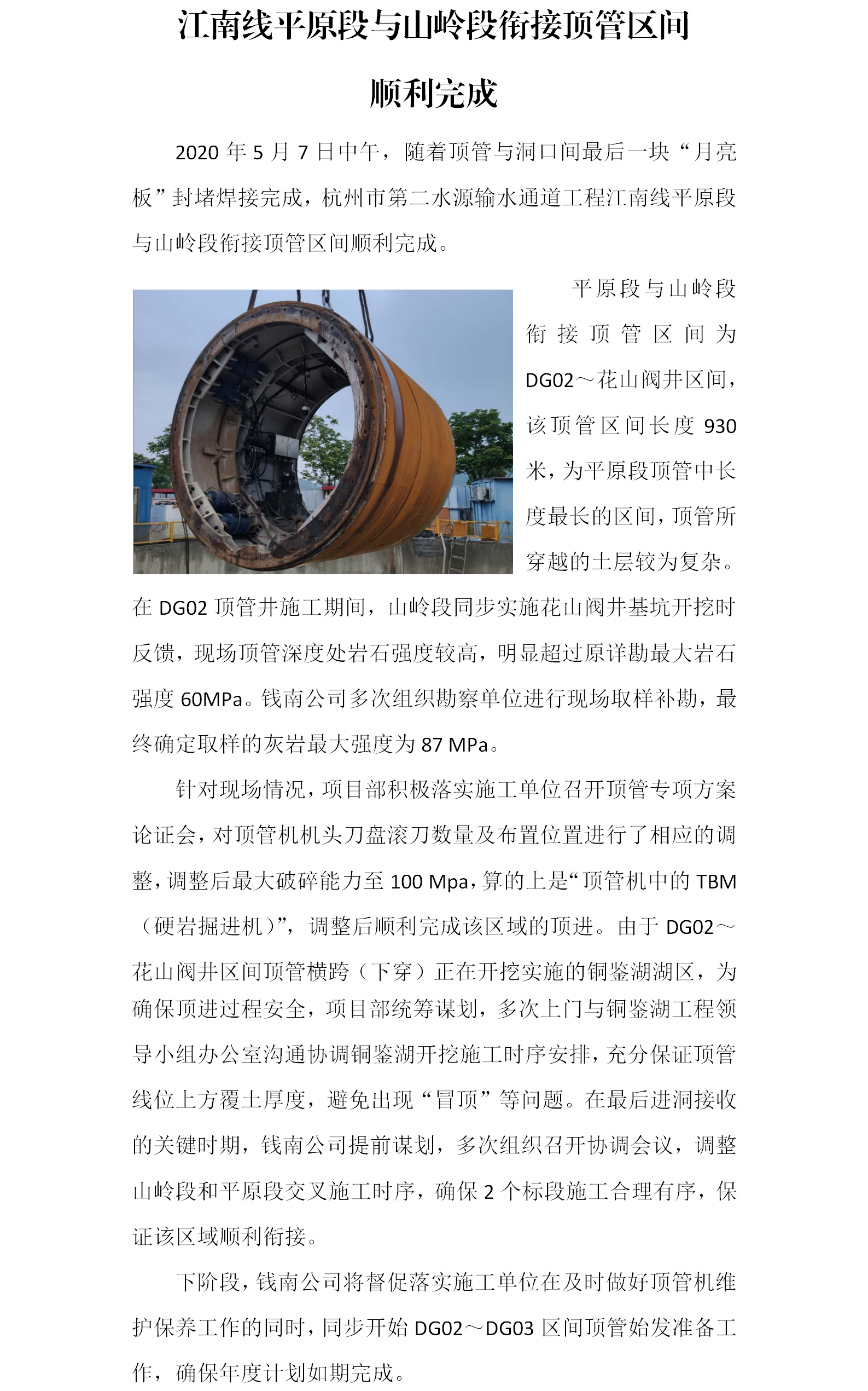 江南线平原段与山岭段衔接顶管区间顺遂完成