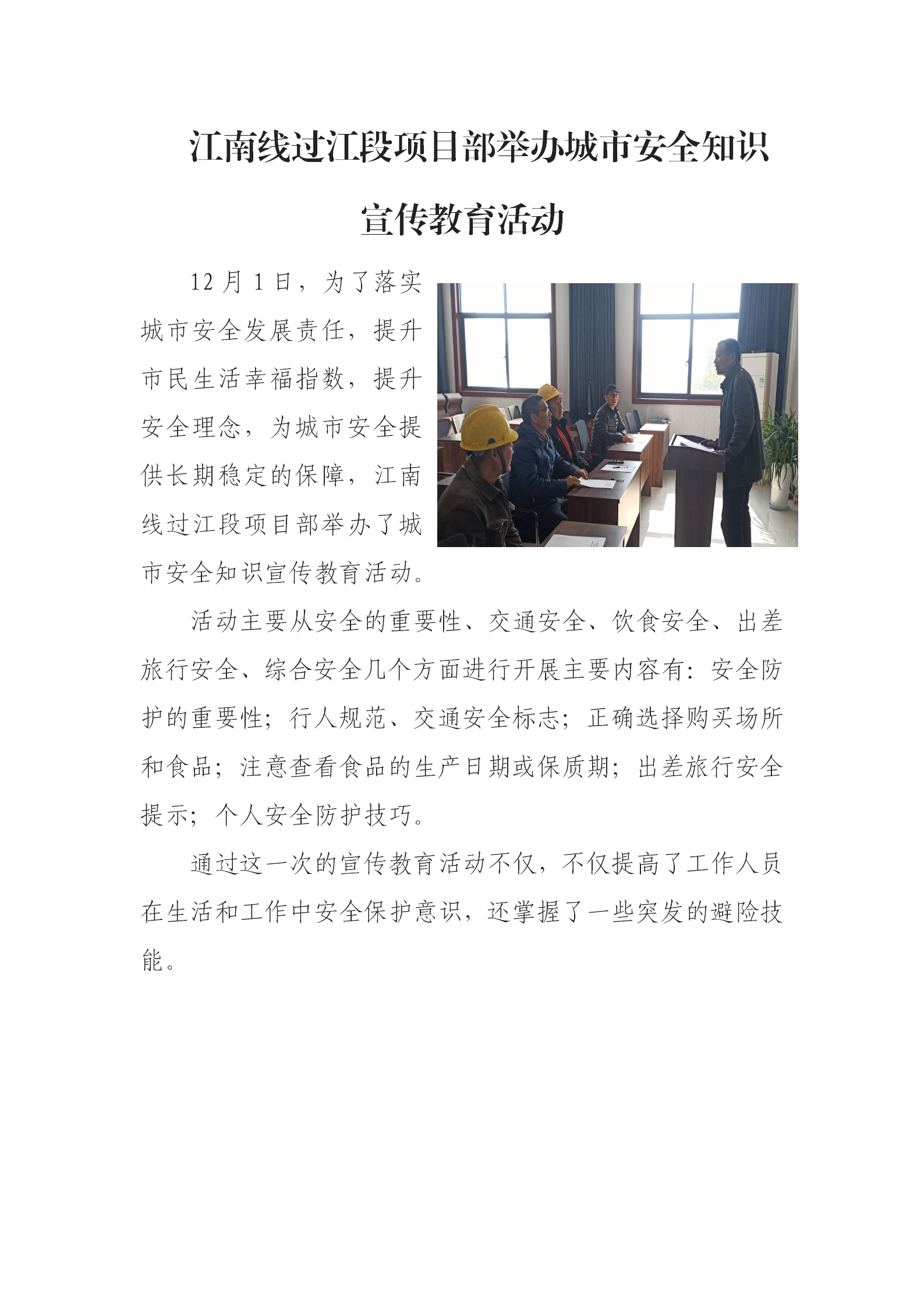 江南线过江段项目部举行都会清静知识宣布道育运动