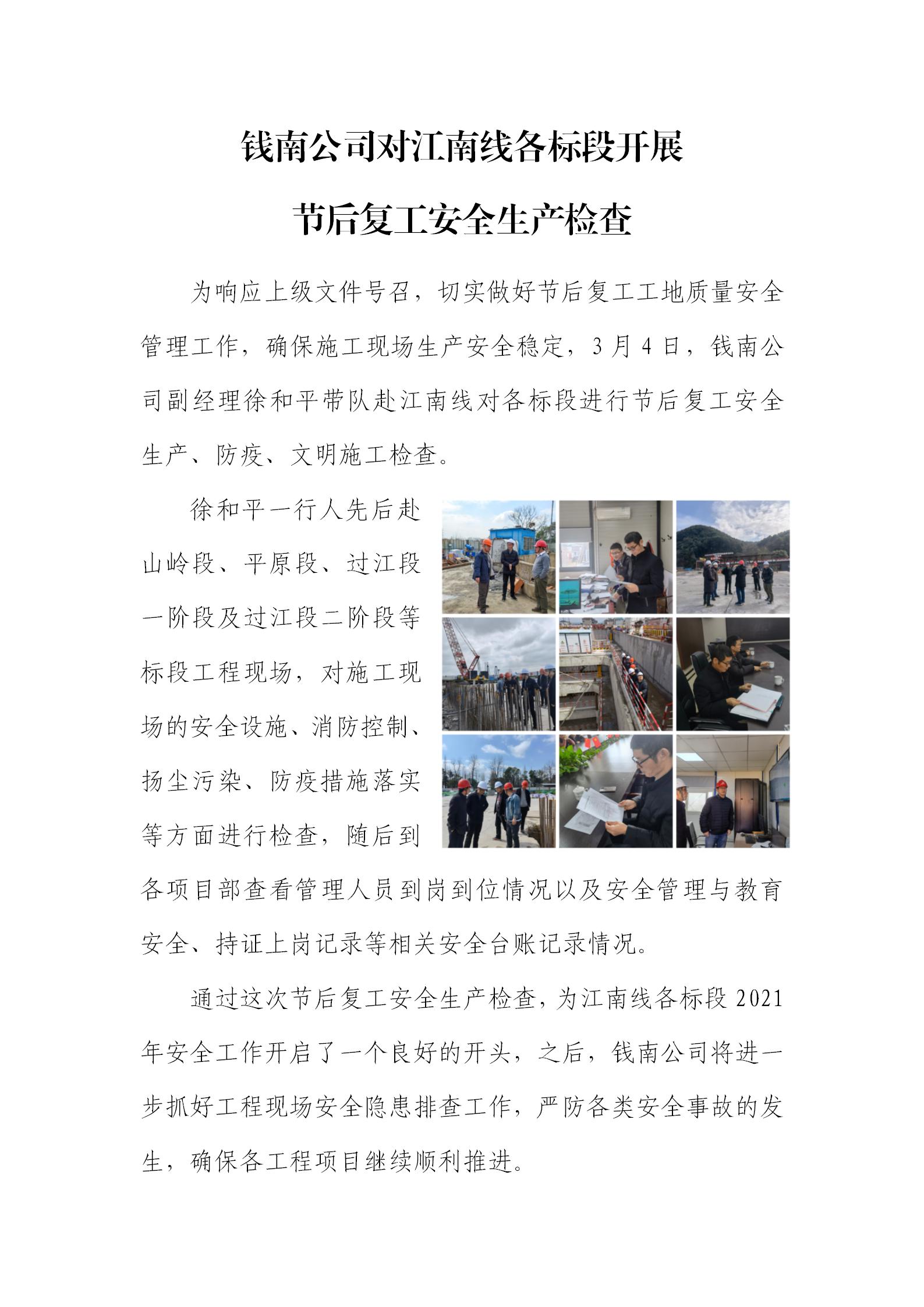 钱南公司对江南线各标段开展