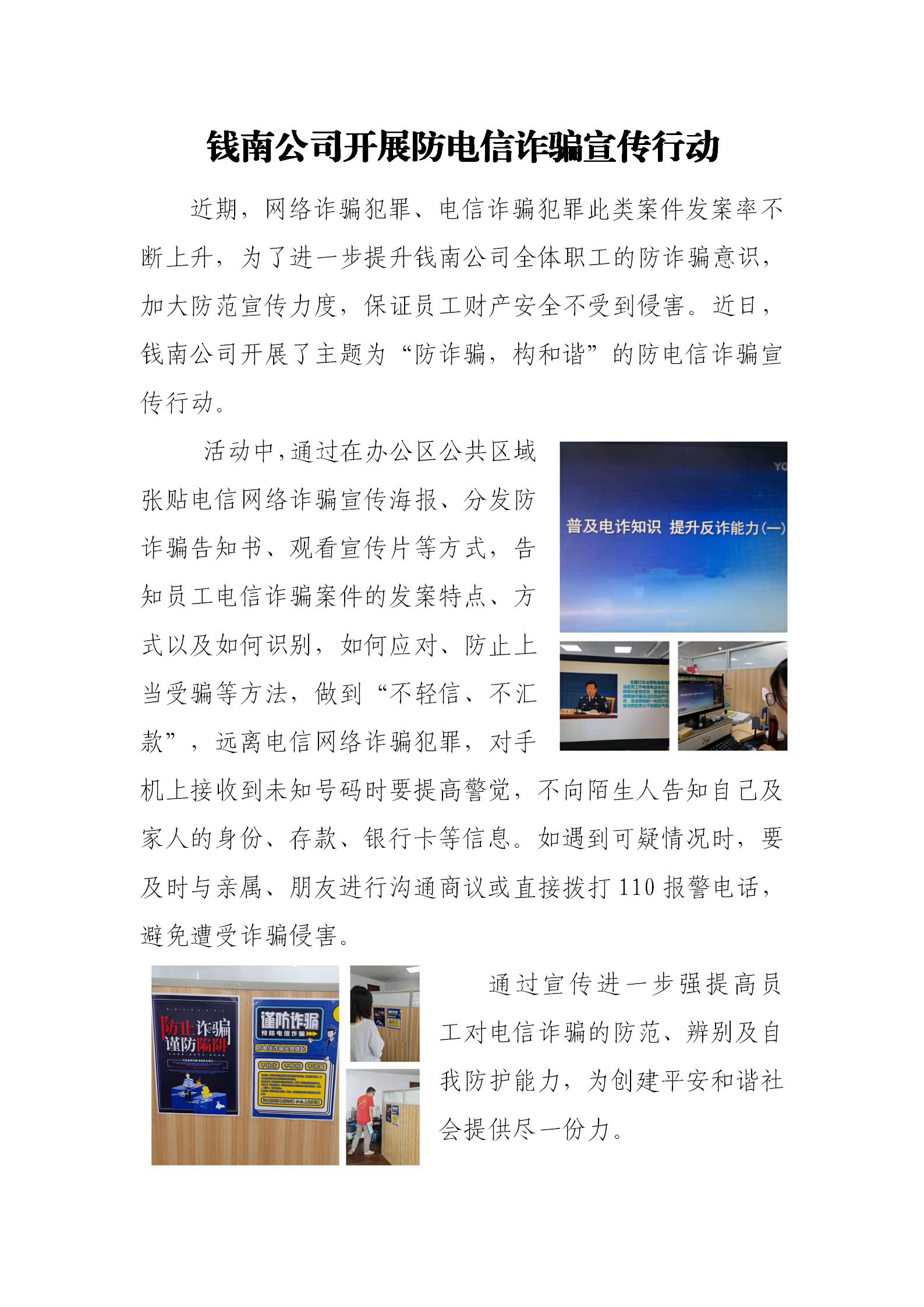 钱南公司开展防电信诈骗宣传行动