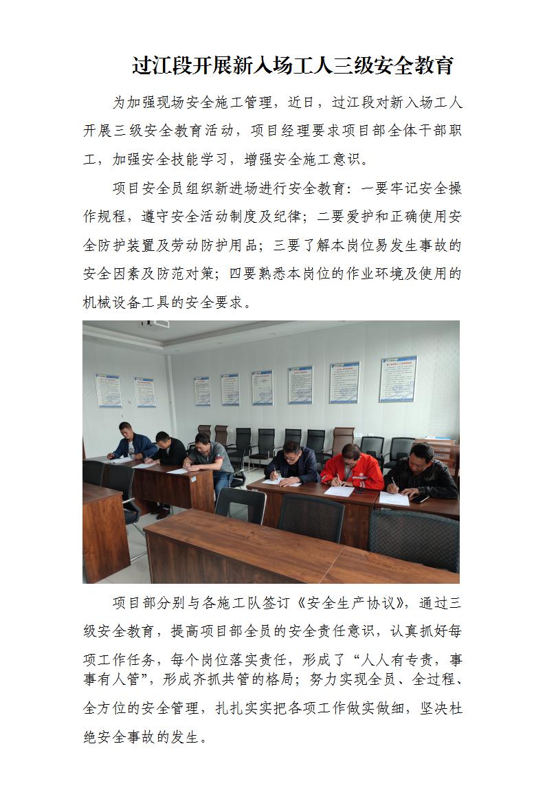 过江段开展新入场工人三级清静教育