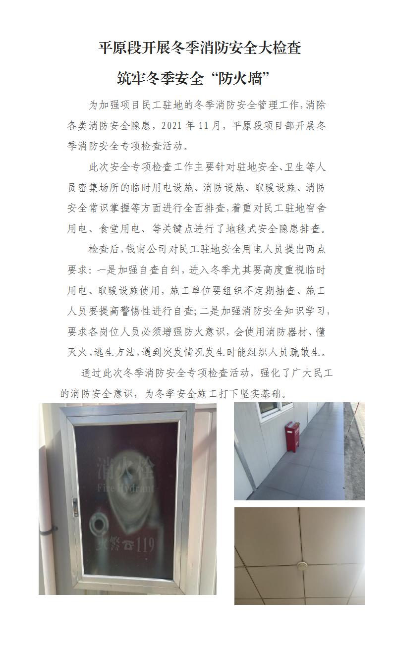 平原段开展冬季消防清静大检查 筑牢冬季清静“防火墙”