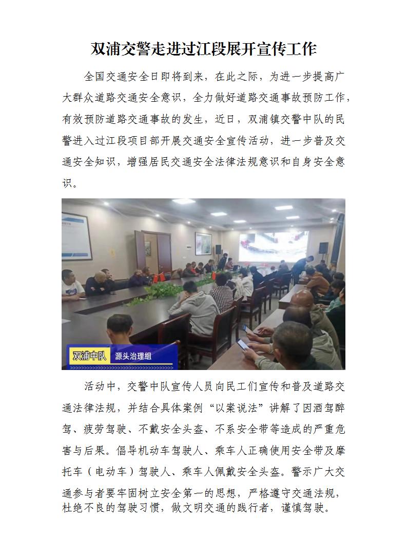 双浦交警走进过江段睁开宣传事情