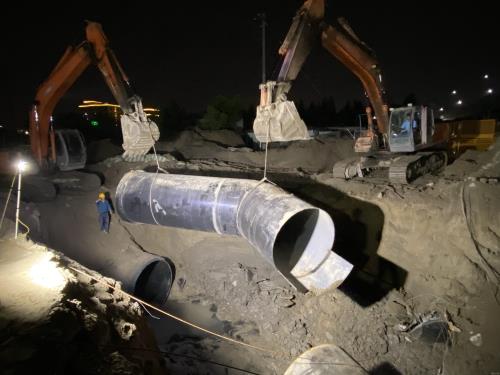 该DN2000管是新塘泵站至钱江水处置惩罚厂主干管,迁改总长为535米,割接点共有2处,一处位于竞汇路与学知路交织口西南侧,另一处位于学知路与知行路交织口东南侧。施工时代,微彩网主城区新塘街道和南片临浦、义桥等9个镇街阻止污水运送。