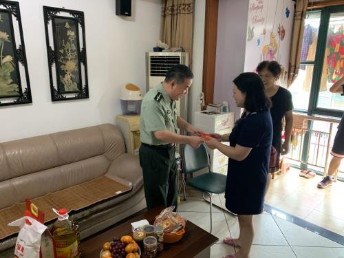 8月1日,北干街道人武部长徐水泉走访慰问检测公司员工、军嫂韩婷,向她送去组织的眷注和温暖,并致以节日的问候和优美祝福。