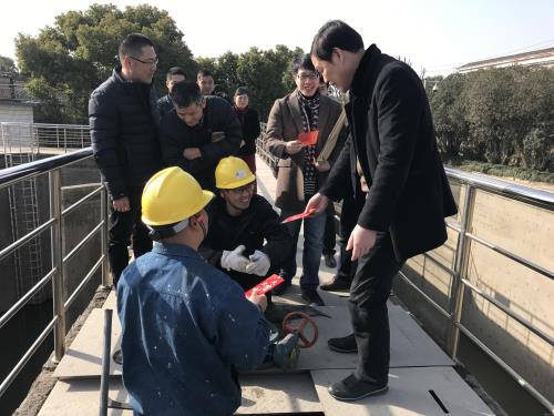 瑞雪兆有年 ,春风迎新岁。2月12日上午 ,集团董事长韩国华 ,总工程师方卫国等一行 ,先后前往检测公司和钱江厂 ,向仍坚守在一线的排水职工送去了新春慰问和节日祝福。
