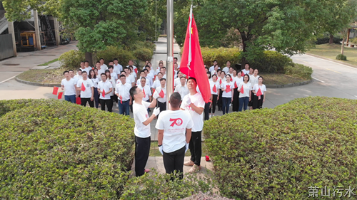 党员们庄重肃穆、精神饱满,佩带党徽整齐排队在钱江水处置惩罚厂国旗台前,陪同着雄壮嘹亮的《义勇军举行曲》,鲜艳的五星红旗冉冉升起,飘扬蔚蓝天空,全场向国旗行注目礼并齐唱国歌。