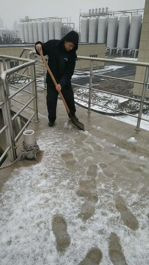 有一种追求叫贡献 。在临江厂门口,在污水池上,冰天雪地正冷的时间,大伙自觉组织扫雪;浓缩池刮泥机支持杆被大雪压断,机修职员冒雪室外作业几小时,修复故障确保提标段生产运行 。